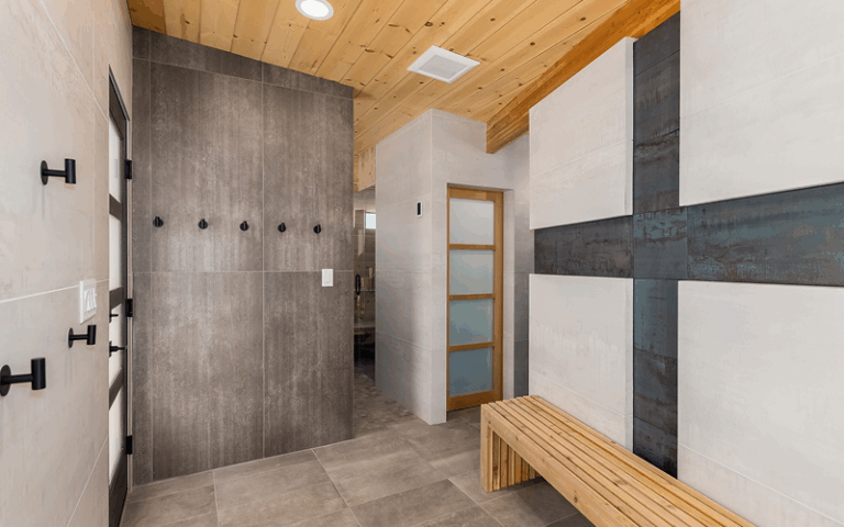 Especially notable is the Finnish flag subtly designed into the wall when you first walk into the dressing room. To some, it may not even be noticeable as the Finnish flag but rather looks like a nice accent on the wall. Only once you realize all the sentiment behind much of the sauna do you see the flag. Enjoy the tour!